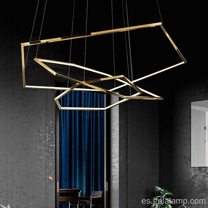 Eleve la estética de su interior con nuestra moderna lámpara de araña hexagonal geométrica , una verdadera obra maestra del diseño de iluminación contemporáneo. Este impresionante accesorio presenta tres anillos hexagonales entrelazados con un acabado en un sofisticado oro cepillado, creando una interacción visual dinámica de líneas y ángulos. Diseñado para quienes aprecian la filosofía "menos es más", combina la elegancia arquitectónica minimalista con la tecnología LED de alto rendimiento.